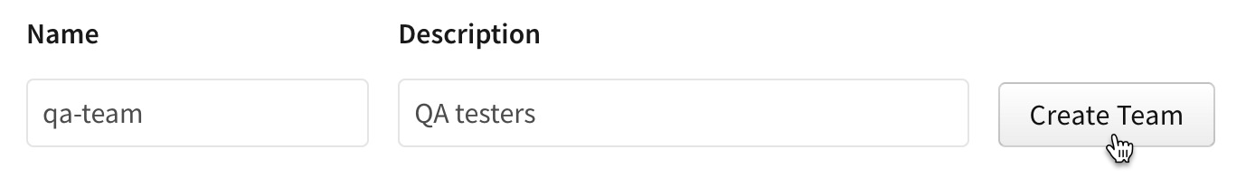 In the "Name" and "Description" fields, type a team name and helpful description. Team names must be lower case and cannot contain spaces or punctuation.